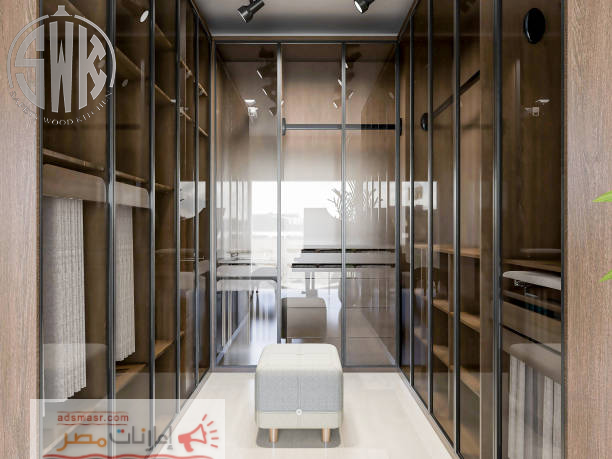 • جزيرة وسطية بسطح زجاجي: لتخزين الإكسسوارات والساعات بطريقة عرض جذابة.