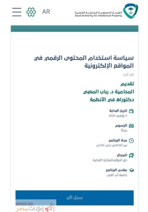 بالتعاون مع أكاديمية الهيئة السعودية للملكية الفكرية بالشراكة مع جامعه ام القري